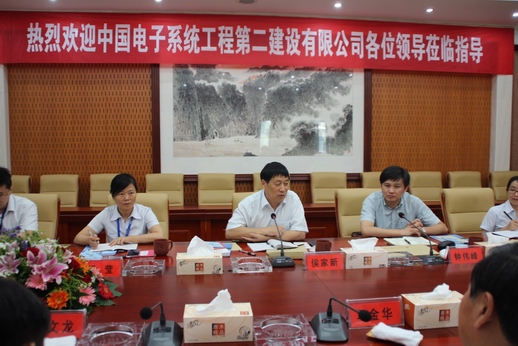 2015年8月27日上午,中國電子系統(tǒng)工程第二建設(shè)有限公司黨委副書記侯家新等一行七人考察我司關(guān)于企業(yè)文化管理方面的成功經(jīng)驗與具體做法,我司董事長馬金華,黨委書記夏文龍,副總經(jīng)理王新建,工會主席錢新緒,綜合辦主任嚴(yán)邦建,人力資源辦主任季海晶熱情接待了來賓。